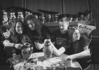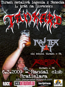 Hlavný ťahák večera, určite mnohým známy, ale keby predsa nie, tu je pár detailov: Asi každý thrasher pozná slávnu nemeckú trojku Sodom - Destruction - Kreator, tak Tankard je ten 4. Veru tak, a to že všade píšem že sú legendy, má samozrejme svoje opodstatnenie. Rok vzniku 1982 !! hovorí za všetko, a keď k tomu pridáme 12 radových albumov a k tomu do konca roku pribudne nový "Thirst" , tak si myslím že toto označenie si právoplatne zaslúžia. Rýchly thrash, pivné texty, charizmatický spevák Gerre ktorému večne trčí pupok, a skvelá show nemôžu nechať metalistu len tak nečinne stáť. Veľký počet zo svojich mnohých koncertov síce odohrali Tankard v rodnom Nemecku, ale okrem toho zavítali aj do USA, Brazílie, Chile, Japonska, Turecka, a koncertovali takmer po celej Európe. Naposledy sa najbližšie objavili v Čechách, a to v roku 2004, tu na Slovensku ich budeme môcť vidieť po 1. krát, takže priatelia, nenechajme si ujsť túto príležitosť, ktovie kedy budeme mať znovu tú možnosť vidieť Tankard takto blízko, a príďme čo v najhojnejšom počte podporiť túto akciu, nech je vidno že thrash tu ešte nevymrel.