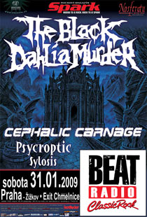 Uchu lahodící sestava kapel se vyznavačům extrémní hudby představí 31. ledna v pražském klubu EXIT Chmelnice. Předně jmenujme zaoceánské deathcorové leadery BLACK DAHLIA MURDER a stále originální a svojské "hydro-grindery" CEPHALIC CARNAGE, které dále podpoří tasmánská deathmetalová ikona PSYCROPTIC a britští SYLOSIS. Koncert se uskuteční v rámci rozsáhlého evropského turné, které odstartovalo 15. ledna na Islandu a končí 22. února koncertem v Lucembursku.