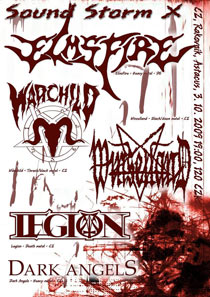 Desátý „jubilejní“ minifestival Sound Storm se uskuteční v sobotu 3. 10. 2009 v rakovnickém motoklubu Astacus. Pozvání místních Warchild přijali němečtí Elmsfire, Legion, Winselland a Dark Angels.