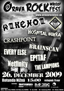 Tradičný záver roka s tradične silným lineup-om ponúka Orava Rockfest Winter, ktorý sa uskutoční počas druhého sviatka vianočného (26.12.2009) v nižnianskej Rotunde (Nižná – okres Tvrdošín). Headlinerom bude česká klasika Alkehol, ktorej budú robiť support ďalšie skvelé veci ako: leopoldovská Hospital Bukra, metaloví Crashpoint, Brainscan, prípadne punkáči z Hospital Bukra. Organizátori jedného z najvýznamnejších hudobných podujatí Oravy prirodzene nezabudli na domácu scénu. Tú v tomto prípade zastupujú naivní rockeri Epitaf, objav roka punkovej scény The Lampions, odlschool rockeri Netfinity či novovychádzajúca metalová hviezda Oravy Every Else. Podujatie začína o 15:00 a predpredaj je spustený na obvyklých lokálnych miestach. Cena lístka je 9 Eur. Podrobné informácie získate na www.oravarockfest.sk.