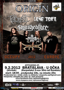 ORIGIN jedna z najintenzívnejších a najpretechnizovanejších zoskupení súčasnej death metalovej scény. Kapela sa za krátky čas vedela presadiť, ba dokonca vo svojom štýle prevzala vedenie. Zo svojou 5-tou radovkou s názvom „Entity“, ktorá je perfektným zhmotnením perfekcie a skutočne vydratej práce sa vydali na celoeurópske turné a zastávka sa samozrejme týka aj našeho malého Slovenska. V hlavnom meste sa ORIGIN predstaví v klube U očka a bude to riadna porcia technického death metálu, ako to vedia zahrať len majstri :).