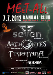 4-hodinová nadupaná MEeT-ALlová show aj s podporou rádia ALIGÁTOR, vás dostane do varu! Melodické power metalové sústo z Ruska prinesie do Randalu skupina Andreya "Archont" Fedorenka, ARCHONTES. Štvorica sa už dnes pripravuje na príchod do našej zeme, kde si zahrá na festivale na východnom Slovensku a odtiaľ poputuje do bratislavského klubu. Slovenské publikum zažije moskovský metal z dielne ARCHONTES na vlastnej koži vôbec po prvý raz. www.youtube.com/watch?v=YTzaHJ0OS_w Český SEVEN sa u nás ukázal na jar počas Minitour so skupinou Tristana. Po dvoch rokoch sa však opäť objaví v Bratislave a to aj so svojim ešte stále horúcim Nuclear Blast-ovským albumom Freedom call z roku 2011. V roku 2010 zahrala v Randali kapela českého gitarového mága Honzu Kirka Behounka spoločný koncert s Victorom Smolski (RAGE), s ktorým zaznamenali úspešnú spoluprácu tak, ako na šiestom autorskom albume skupiny SEVEN (Seven Deadly Sins) či počas spoločného turné po celej Európe v roku 2010.