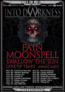 Roli headlinera na sebe vzala švédská industriálně metalová pecka PAIN v čele s mistrem Peterem Tägtgrenem (Hypocrisy), takže to bude opravdu tanec! Morbidní texty ve spojení s nadupaným technickým metalem a zlými kytarami udělají dokonale šťastného snad každého fanouška. Když k tomu ještě připočítáte známé evergreeny kapely, jako jsou "Eleanor Rigby", "Follow Me" nebo "Shut Your Mouth" které určitě zazní, plus songy z aktuálního alba kapely "You live Only Twice", jistě uznáte, že jedině PAIN mohou úspěšně šířit temnou atmosféru letošního metalového podzimu! Průlomovým rokem portugalské kapely MOONSPELL byl rok 1996, kdy představili světu na turné s Type O´Negative desku "Irreligious". Nyní svým jménem, svoji sofistikovanou, chytlavou a zvukově velmi kvalitní hudbou příjemně korunují temnou sestavu Into Darkness Tour. Přivítejme jejich gothic - avantgardní - temný metal opět ve Zlíně! MOONSPELL pro vás navíc chystají také zbrusu nový materiál, double album "Alpha Noir" a "Omega White". To bude velké! Do doom kategorie pak spadají SWALLOW THE SUN, ale tito Finové se sami spíše cítí na melacholické tvůrce atmosféry. Nedávno vydali novou desku "Emerald Forest And The Blackbird" a dokázali, že jsou opravdu nezaměnitelní. Jejich zvuk se pomalu válí při zemi, je bohatý na depresivní melodie a vytváří skutečně děsivou atmosféru, kterou sem tam prořízne death metalová sekera. Na druhé straně pak stojí LAKE OF TEARS, známí švédští veteráni, kteří mění styl s každou deskou, ale jedna věc zůstává stejná, a tou je naprostá a neproniknutelná temnota melodických skladeb. Jejich grandiózní album "Illwill" a jejich povedená kombinace death metalu s gothickými prvky a chytlavými melodiemi vás roztaví na kousky. INTO DARKNESS 2012 - opravdu vzrušující sestava, která vás přijede postrašit také do ČR - do ZLÍNA, Masters Of Rock Café - 17. 11. 2012! Vstuoenky jsou k dostání ve všech obvyklých předprodejích a objednávat můžete také na www.mastersofrock.cz.