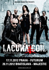 Italská gothic/alternivně-metalová formace LACUNA COIL startuje velké evropské turné „Dark Legacy 2012“ na podporu své nové desky „Dark Adrenaline“ a při té příležitosti se představí také 17/11 v Praze v klubu Futurum a 20/11 v Bratislavě v MMC.