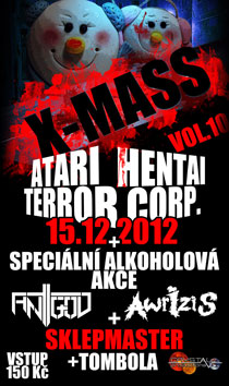 Co se týče hudební stránky festivalu, zahraje špička české scény jako jsou ATARI TERROR,HENTAI CORPORATION, vítěz naší soutěže a smečky AWRIZIS a ANTIGOD! Tímto výčet dárku zdaleka nekončí! Vyhrát můžete lístek na BRUTAL ASSAULT, od 18:00 do 20:00 nakoupit alkoholové dobroty za zvýhodněné ceny a také kupovat zboží Crystal Productions ve speciální vánoční akci! Pokud by vás ani tohle nepřesvědčilo a chtěli byste skrblit, přichystali jsme vám ve spolupráci s rádiem Čas Rock volné vstupenky! Stačí jen poslouchat frekvence a lístek můžete dostat! Pokud vás ze sentimentální vánoční nálady nedostane X-MASS 2012 tak už NIC!