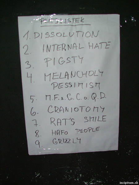 Antitrend VIII. Melancholy Pessimism, Pigsty, Mincing Fury And Guttural Clamour Of Queer Decay, Craniotomy, Internal Hate, Dissolution 16.10.2004, RC Brooklyn - Brno (CZ)