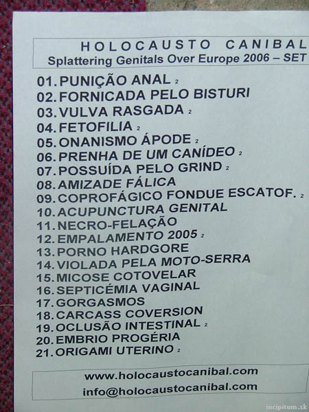 Antitrend & Bizzare Leprous Festival II Psychopathic Sadism, Eternal Bleeding, Skoda120, Smashed Face, Splattered Mermaids, Parricide, Destructive Explosion Of Anal Garland, Gride, Pigsty, Craniotomy, Mincing Fury And Guttural Clamour Of Queer Decay, Holocausto Canibal, Cerebral Turbulency, Spasm, Breakdown 24.6.2006, Žabčice u Brna (CZ)