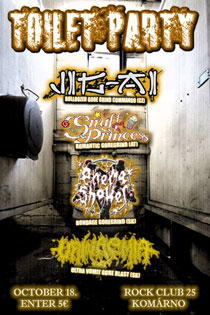 Toilet Party Jig-ai (Bulldozer Gore Grind Commando, CZ), Snuff Princess (Romantic Goregrind, AT), Enema Shower (Bondage Goregrind, SK), Urinaemia (Ultra Vomit Gore Blast, SK) Club 25 - Komárno (SK), 5 EUR, info: facebook.com event, 0908135790, 0907485645