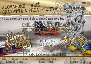 Slovanské turné bratstva a priateľstva 2014 Silent Stream Of Godless Elegy (ČR), Lunatic Gods (SK), Khors (UA) Randal Club - Bratislava (SK), info: facebook.com event